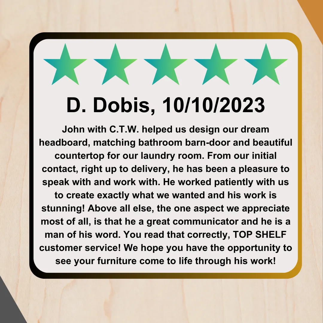 ✓ Personalized Experience: When you choose Cut Twice Woodworks, you become an essential part of the creative process. We offer design consultations that allow us to understand your preferences and create a piece that reflects your unique style.